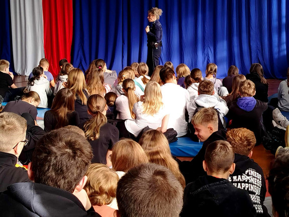 W ramach akcji „Miesiąc Bezpieczeństwa” funkcjonariusze Komendy Miejskiej Policji w Piotrkowie Trybunalskim odwiedzili uczniów Językowej Szkoły Podstawowej im. Agnieszki Holland.