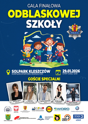 29 stycznia 2026 roku o godz. 12:00 w kompleksie sportowo–rekreacyjnym SOLPARK w Kleszczowie odbędzie się uroczysta gala finałowa akcji „Odblaskowa Szkoła”. Wydarzenie zostanie zorganizowane po raz pierwszy w województwie łódzkim w formule gali finałowej podsumowującej działania podejmowane na rzecz bezpieczeństwa dzieci i młodzieży w ruchu drogowym.