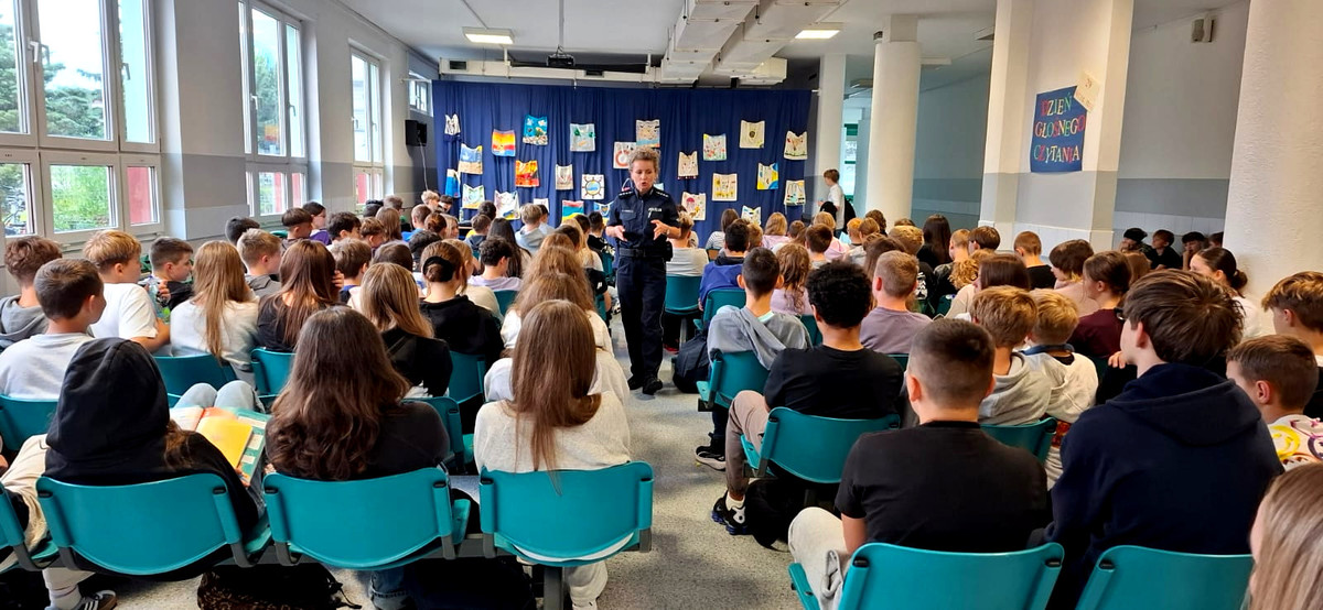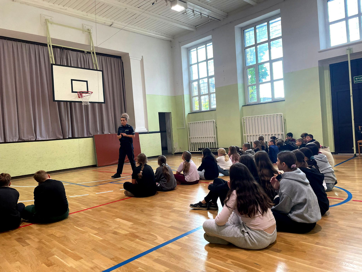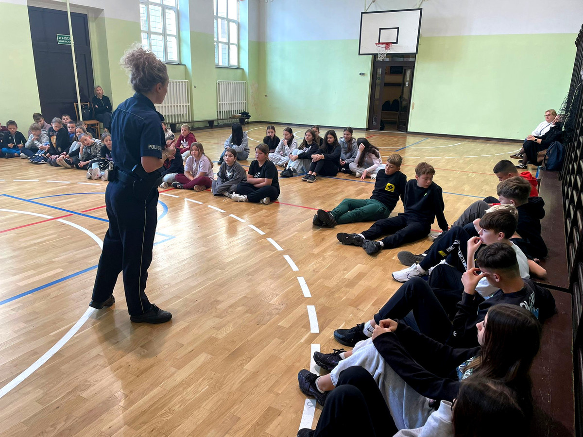 Szczególną uwagę zwrócono na zjawisko przemocy rówieśniczej – jej przejawy, skutki oraz konsekwencje prawne, jakie mogą ponieść sprawcy takich czynów. Spotkanie było dla uczniów ważną lekcją, pokazującą, że każde działanie naruszające godność i bezpieczeństwo drugiego człowieka jest poważnym naruszeniem prawa.