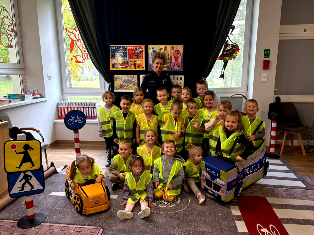 Podczas spotkania każdy maluch otrzymał kamizelkę odblaskową, ktore ufundował Wójt Gminy Grabica.