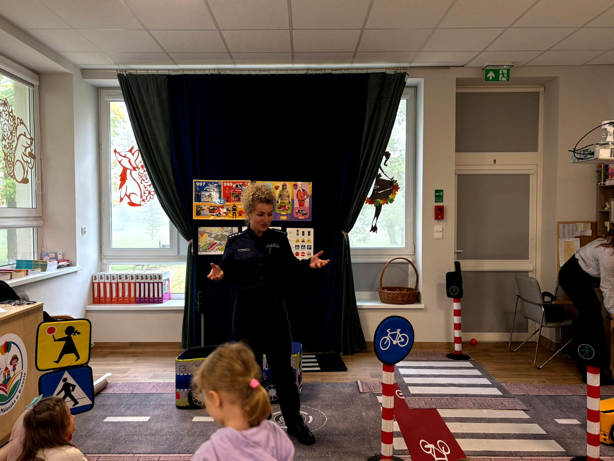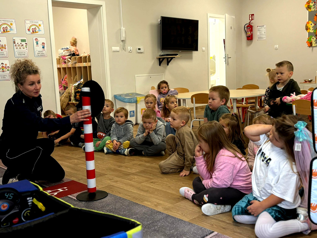 15 października 2025 roku asp. szt. Katarzyna Dębińska z Komendy Miejskiej Policji w Piotrkowie Trybunalskim odwiedziła Akademię Maluszka w Brzozie. Celem wizyty było przybliżenie najmłodszym zasad bezpiecznego zachowania w różnych sytuacjach dnia codziennego. Policjantka w ciekawy i przystępny sposób opowiedziała dzieciom o swojej pracy, o tym, jak wygląda codzienna służba oraz dlaczego tak ważne jest przestrzeganie zasad bezpieczeństwa. Przedszkolaki dowiedziały się m.in., jak bezpiecznie poruszać się po drodze, jak reagować, gdy zaczepi je obca osoba, oraz dlaczego zawsze należy korzystać z fotelików i pasów bezpieczeństwa w samochodzie. Dzieci z ogromnym zainteresowaniem słuchały prelekcji, a następnie zadawały mnóstwo pytań.