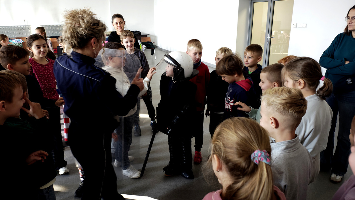 22 października 2025 roku w piotrkowskiej jednostce gościliśmy uczniów Szkoły Podstawowej w Proszeniu. Podczas zajęć uczniowie dowiedzieli się jak bezpiecznie poruszać się po drodze, a także co zrobić, gdy zgubią się w sklepie lub w lesie. Dzieci poznały wyposażenie policjanta niezbędne w codziennej służbie.