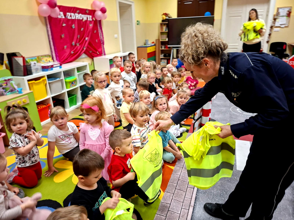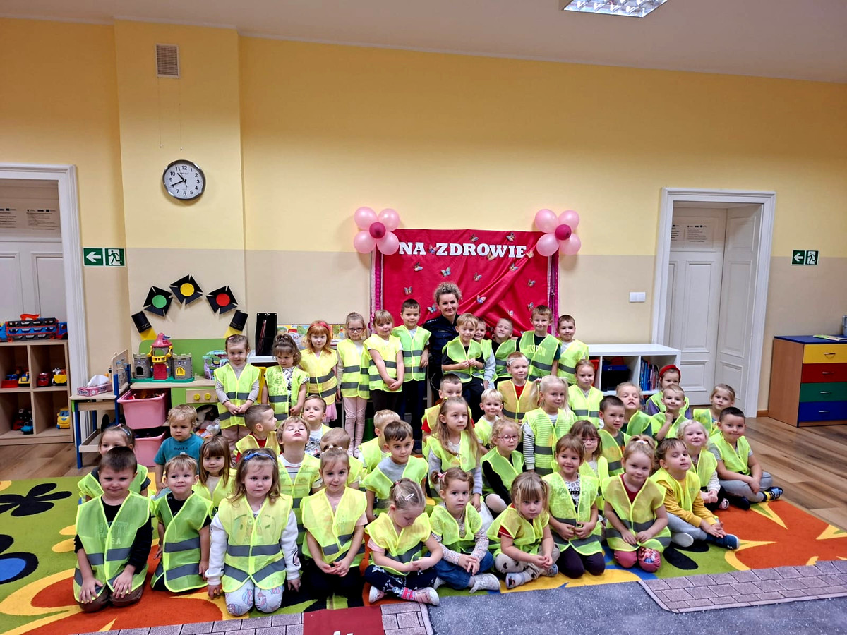 Aspirant sztabowy Katarzyna Dębińska odwiedziła Przedszkole Poziomka w Szydłowie. Dzieci,w przyjazny sposób, przyswoiły zasady bezpieczeństwa na drodze. Każde z nich otrzymało kamizelkę odblaskową, by być lepiej widocznym na drodze.