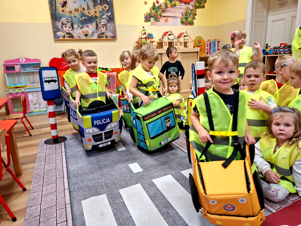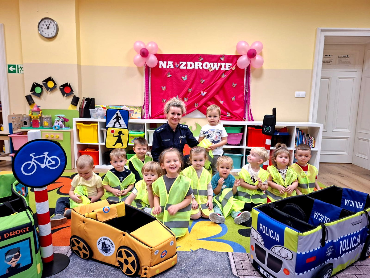 24 października 2025 roku, w Przedszkolu Poziomka w Szydłowie, odbyła się pogadanka edukacyjna dotycząca zasad bezpiecznego poruszania się po drodze. Policjantka z Komendy Miejskiej Policji w Piotrkowie Trybunalskim w ciekawy i przystępny sposób przypomniała dzieciom podstawowe zasady ruchu drogowego. Podczas spotkania przedszkolaki mogły aktywnie uczestniczyć w zajęciach, korzystając z Miasteczka Ruchu Drogowego. Dzięki niemu milusińscy mogli przećwiczyć właściwe zachowania na drodze takie jak przechodzenie przez przejście dla pieszych, rozpoznawanie znaków drogowych oraz reagowanie na sygnały świetlne.