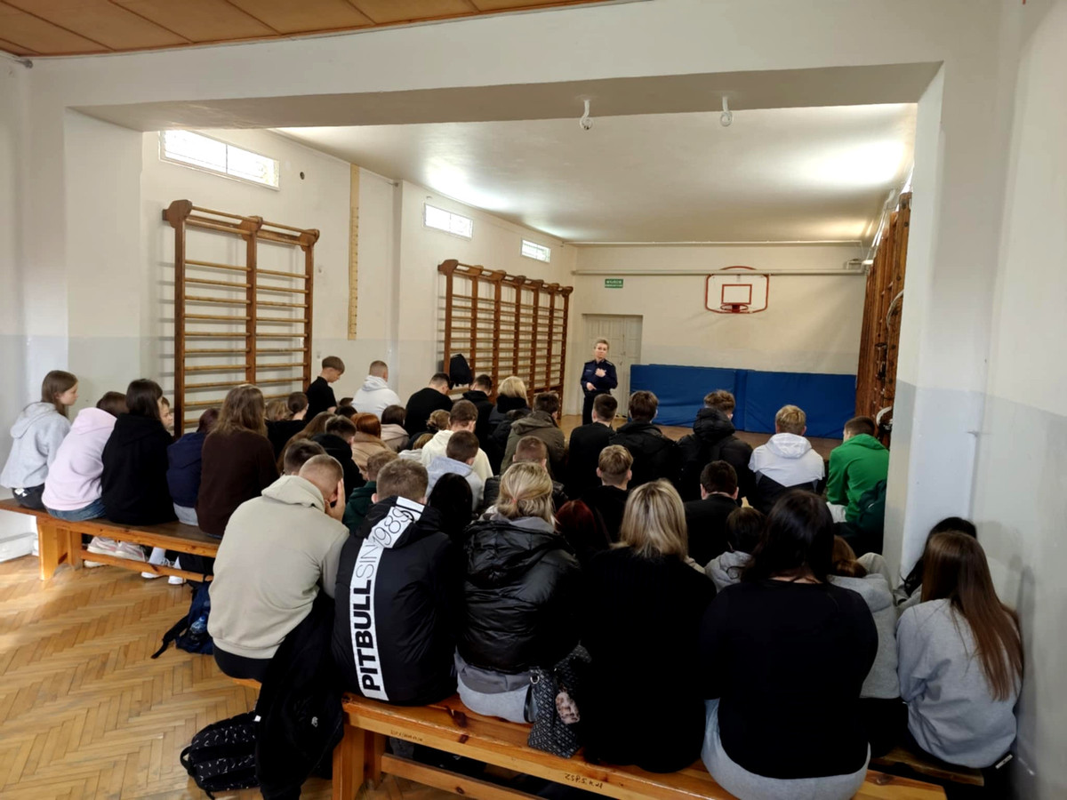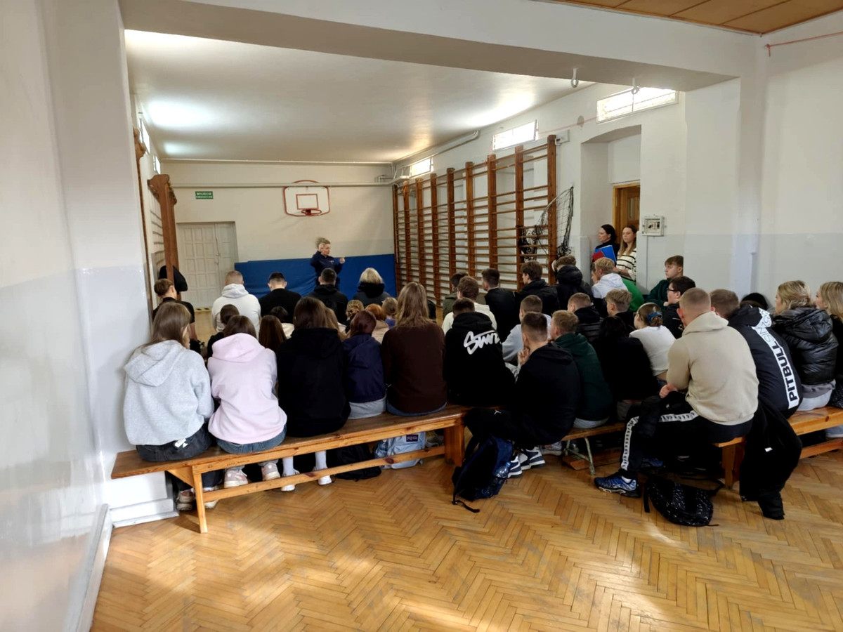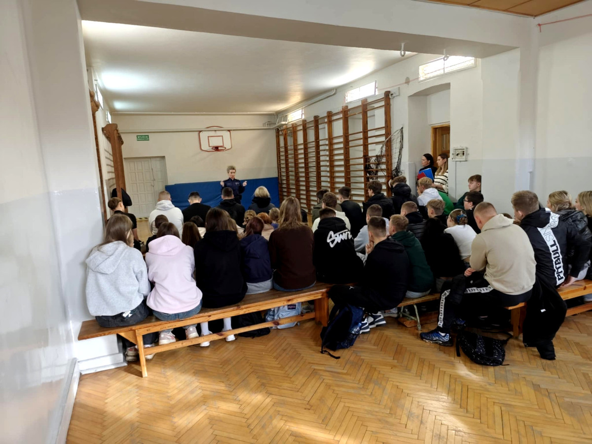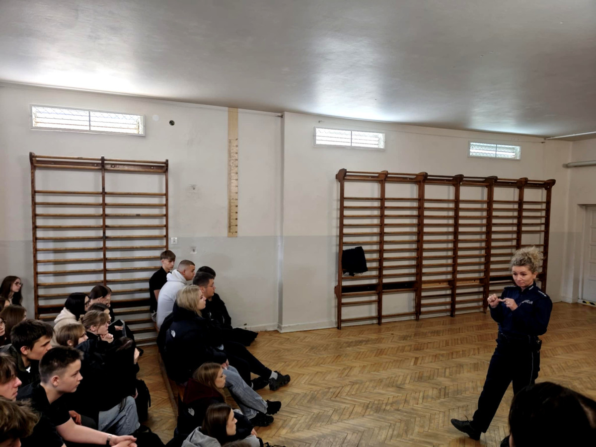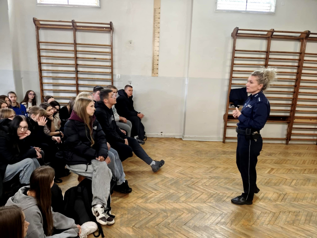 W ramach ogólnopolskiej kampanii „Dzieciństwo bez przemocy” policjantka odwiedziła uczniów Zespołu Szkół Ponadpodstawowych nr 5 w Piotrkowie Trybunalskim, by porozmawiać o przemocy oraz hejcie.