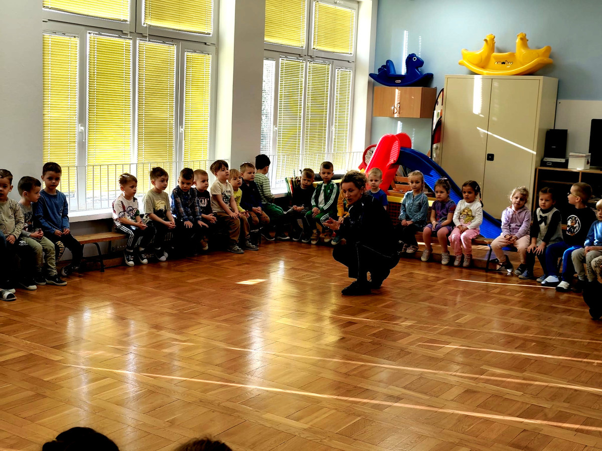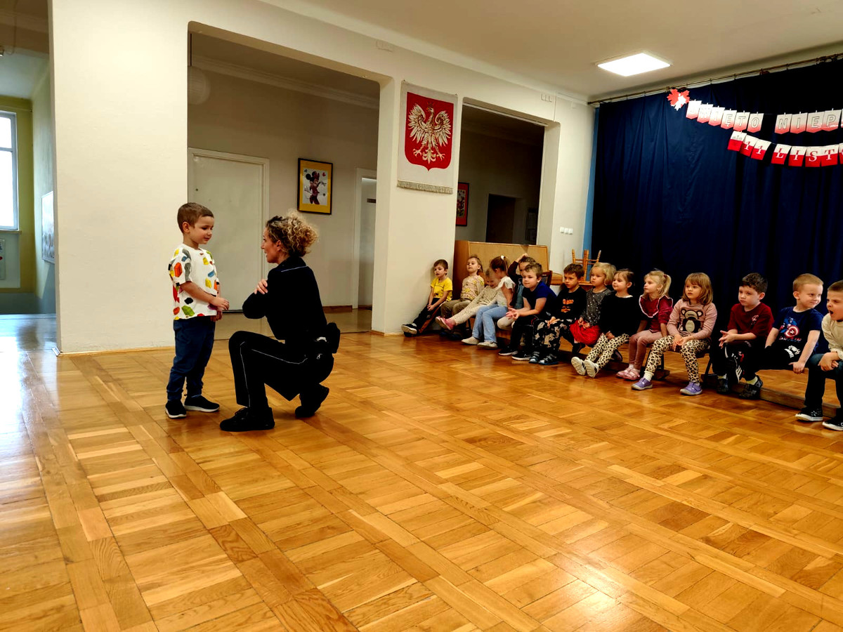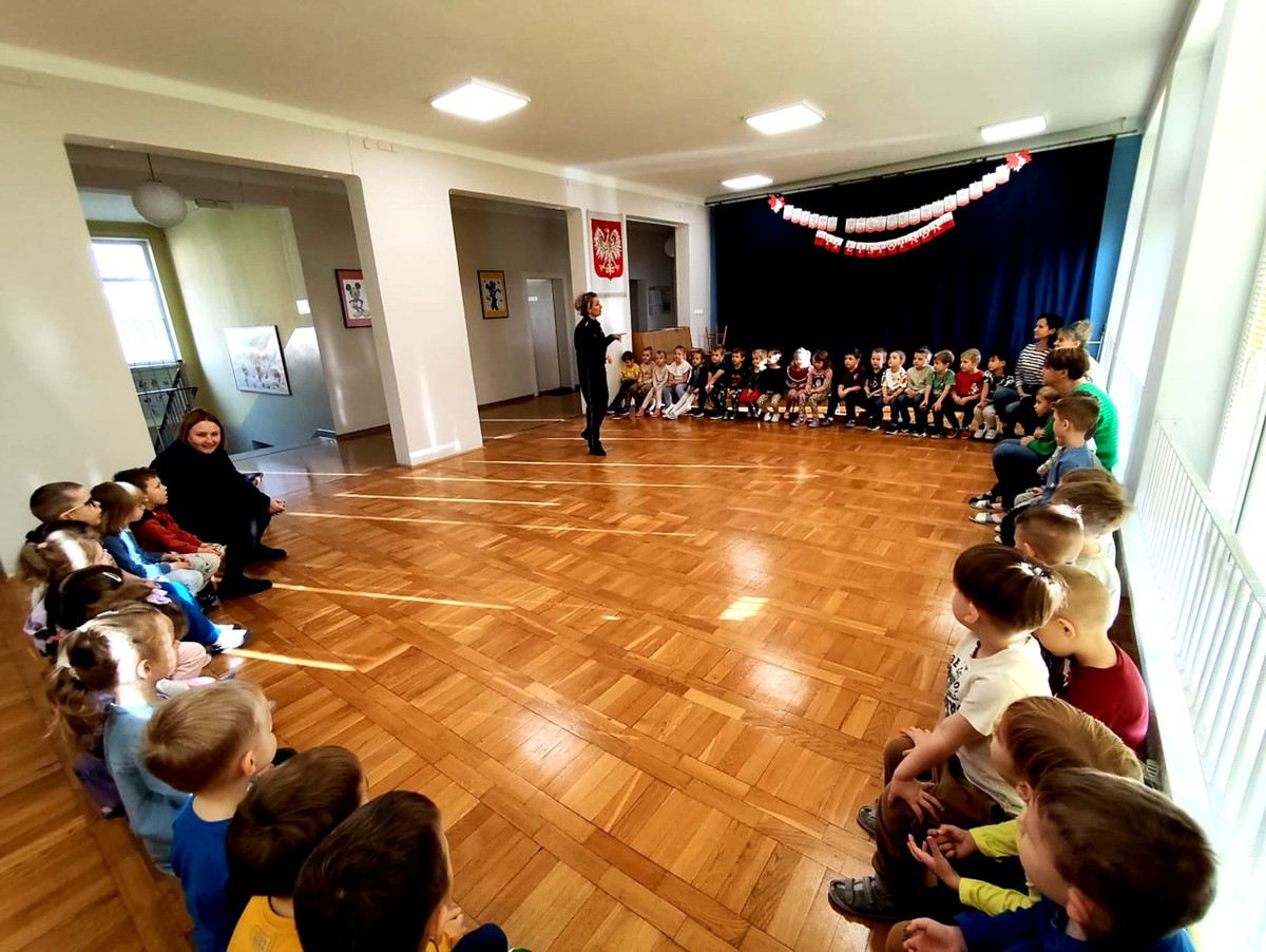Tego samego dnia odbyła się również prelekcja w Przedszkolu Samorządowym nr 20 w Piotrkowie Trybunalskim. Spotkanie dotyczyło szeroko pojętego bezpieczeństwa. Funkcjonariuszka przypomniała dzieciom podstawowe zasady ruchu drogowego. Omówiła prawidłowe zachowanie podczas przechodzenia przez jezdnię, korzystania z przejść dla pieszych oraz sygnalizacji świetlnej. Przedszkolaki poznały także zasady kontaktu z osobą obcą. Policjantka zwróciła także uwagę na to, jak radzić sobie w sytuacji zagubienia. Przedszkolaki wiedzą już, że muszą zachować spokój, pozostać w miejscu oraz zwrócić się o pomoc do zaufanej osoby dorosłej. Mundurowa przypomniała milusińskim numer alarmowy 112, podkreślając, że dzieci też mogą dzwonić, ale tylko w razie realnego zagrożenia. Podczas spotkania omówiła również pracę policjanta, jego wyposażenie służbowe oraz przeznaczenie poszczególnych elementów umieszczonych na pasie służbowym.