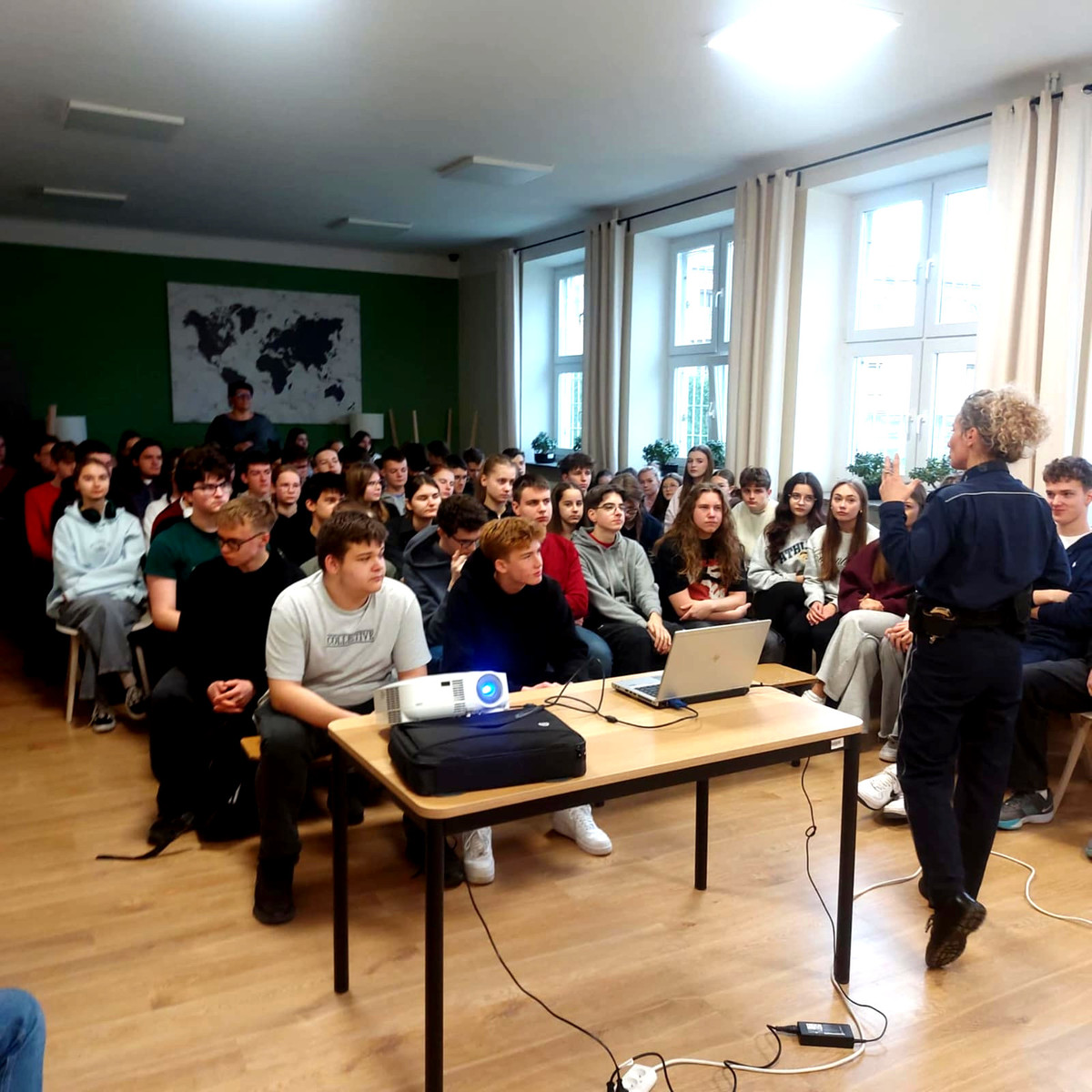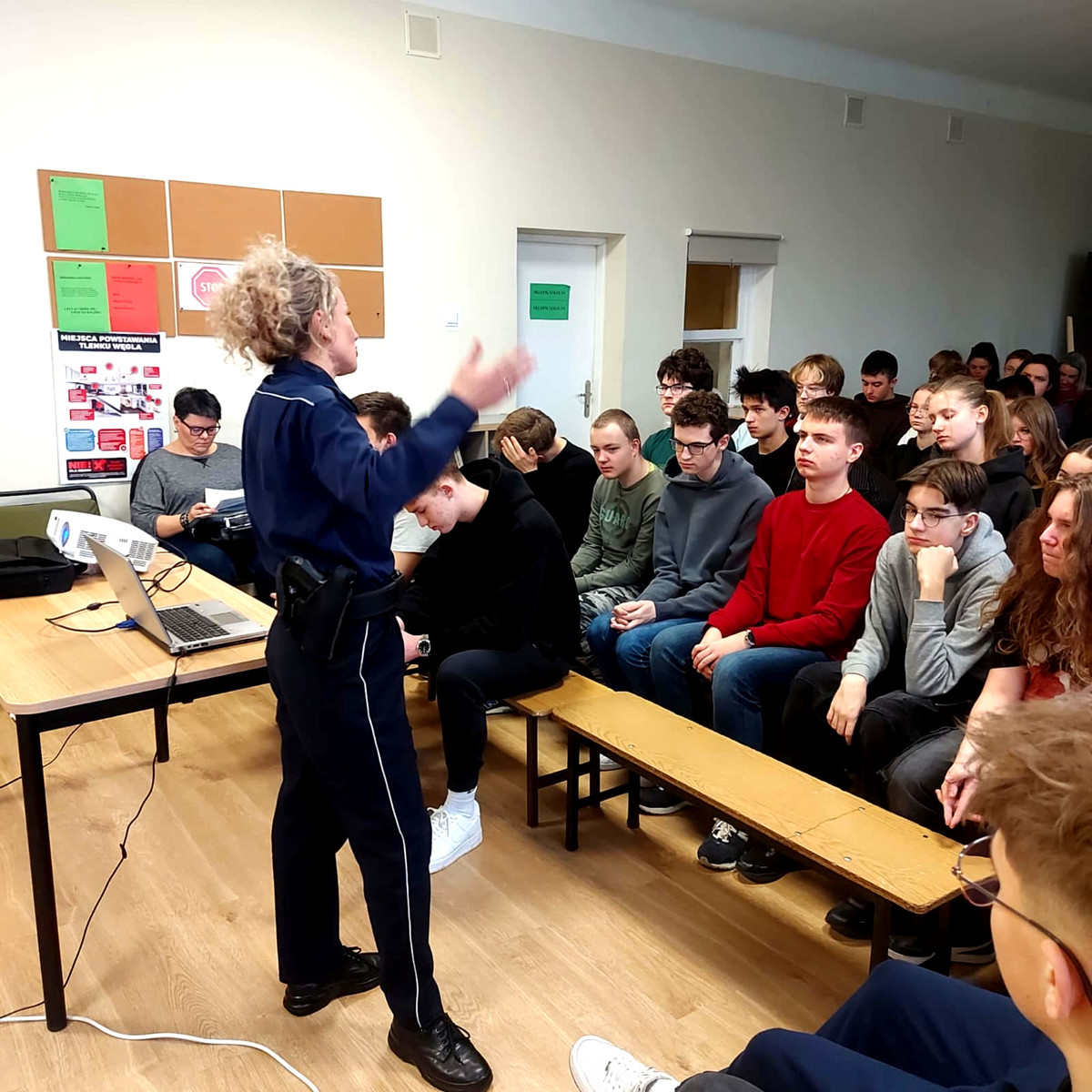 14 listopada 2025 roku aspirant sztabowy Katarzyna Dębińska przeprowadziła prelekcję w III Liceum Ogólnokształcącym w Piotrkowie Trybunalskim. Spotkanie dotyczyło problemów z jakimi młodzież, może zetknąć się w rzeczywistości szkolnej i rówieśniczej. Spotkanie poświęcone było zagadnieniom hejtu, mowy nienawiści, rozboju oraz narkotyków. Podczas zajęć policjantka podkreśliła, że agresja słowna, przemoc emocjonalna i cyberprzemoc mogą wyrządzać krzywdę porównywalną do przemocy fizycznej. Zwróciła także uwagę na to, jak hejt wpływa na samoocenę, rozwój emocjonalny oraz relacje społeczne. Funkcjonariuszka omówiła również konsekwencje prawne, jakie może nieść za sobą upowszechnianie nienawistnych treści oraz znieważanie innych osób. Podkreśliła także różnicę między konfliktem rówieśniczym a czynem karalnym, za który mogą grozić środki wychowawcze, poprawcze lub odpowiedzialność karna. Policjantka przedstawiła uczniom katalog środków, jakie może zastosować sąd rodzinny, m.in. nadzór kuratora, zobowiązania do określonego zachowania, skierowanie do ośrodków wychowawczych czy zakładów poprawczych. Aspirant sztabowy Katarzyna Dębińska szczególny nacisk położyła na odpowiedzialność za udzielanie narkotyków osobom małoletnim. Wyjaśniła, że jest to przestępstwo o szczególnie poważnym charakterze, które zagrożone jest surowymi konsekwencjami prawnymi. Natomiast osoby udzielające, nakłaniające lub ułatwiające dostęp do tego typu środków ponoszą odpowiedzialność niezależnie od własnego wieku.