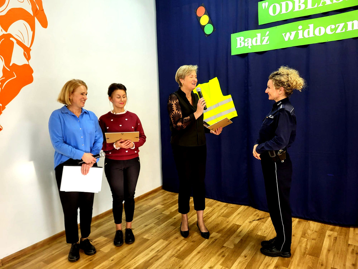 Szczególną uwagę poświęcono znaczeniu odblasków pokazując, jak bardzo poprawiają widoczność pieszych po zmroku. Uczniowie dowiedzieli się, w jakich miejscach najlepiej je umieszczać oraz jak właściwie z nich korzystać, by były najbardziej efektywne. W trakcie akcji wielokrotnie podkreślano, że nawet niewielki odblask może uratować życie. Pieszy wyposażony w elementy odblaskowe jest widoczny dla kierowcy z dużo większej odległości, co pozwala na bezpieczne wyhamowanie i odpowiednią reakcję. Uczniowie zobaczyli przykłady sytuacji, w których brak odblasku prowadzi do zagrożenia. Przekonali się także, dlaczego warto nosić go codziennie, szczególnie jesienią i zimą.