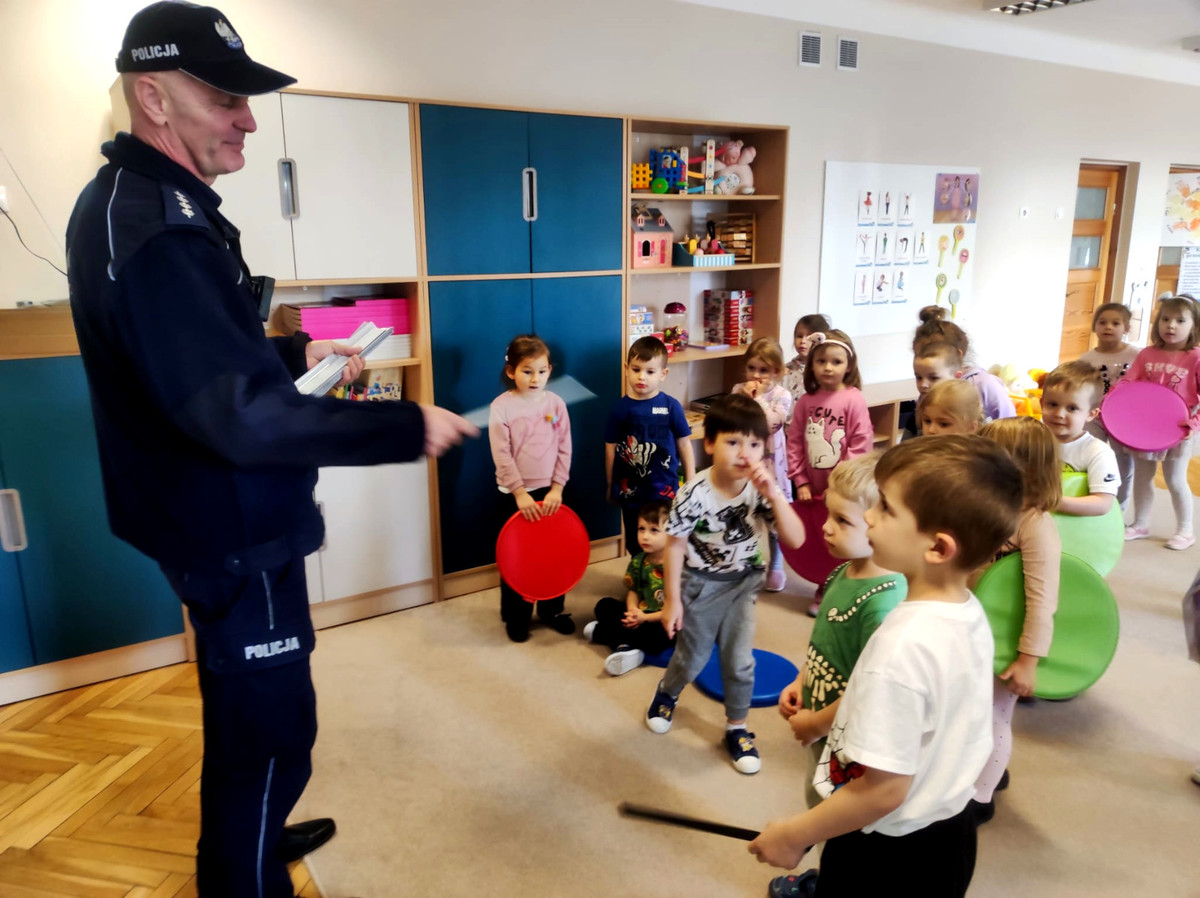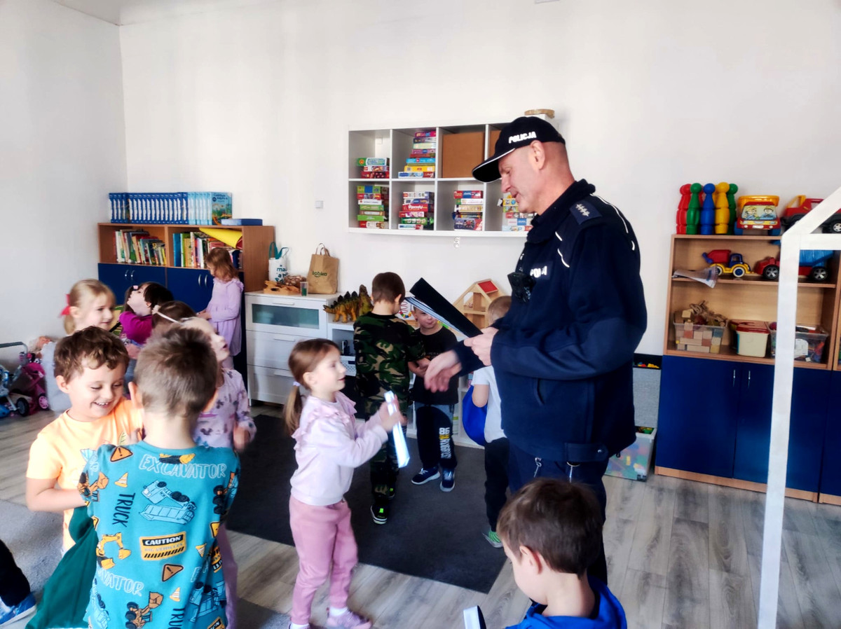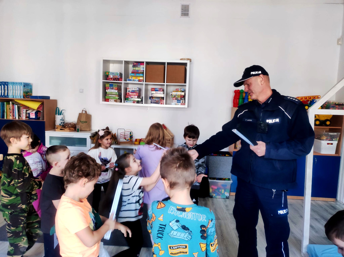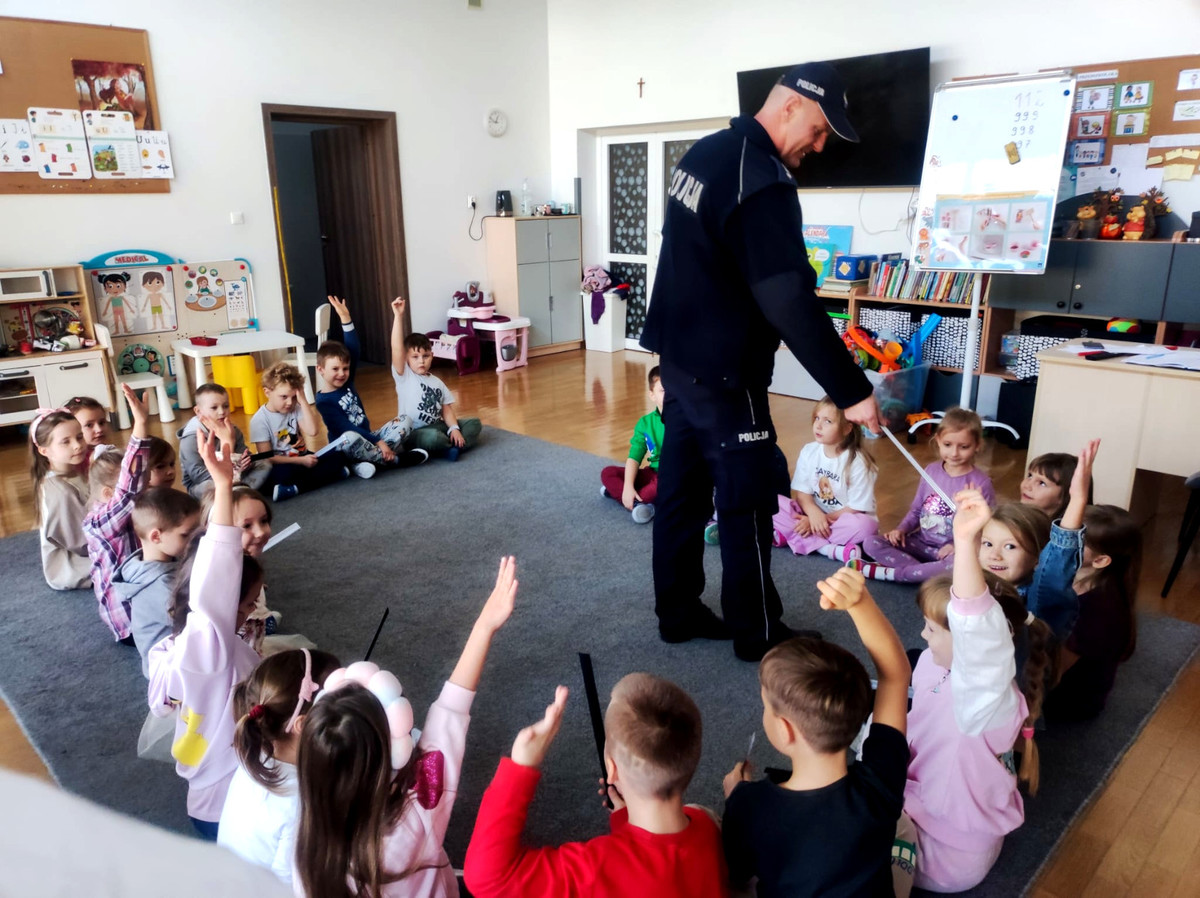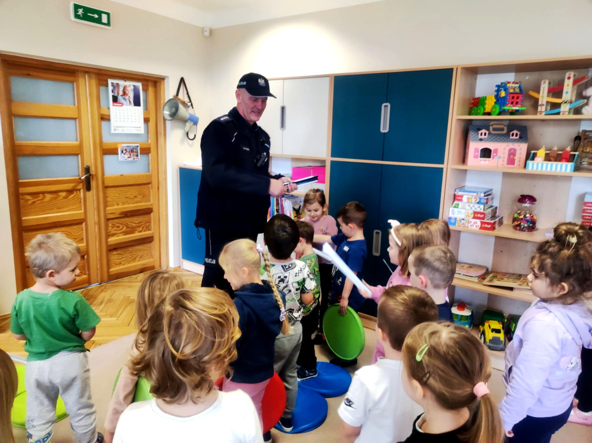 Aspirant sztabowy Zbigniew Skrobek odwiedził przedszkolaków z terenu miasta, aby w przystępny i przyjazny sposób porozmawiać z nimi o bezpieczeństwie. Celem spotkania było kształtowanie właściwych postaw oraz budowanie zaufania do funkcjonariuszy Policji już od najmłodszych lat.