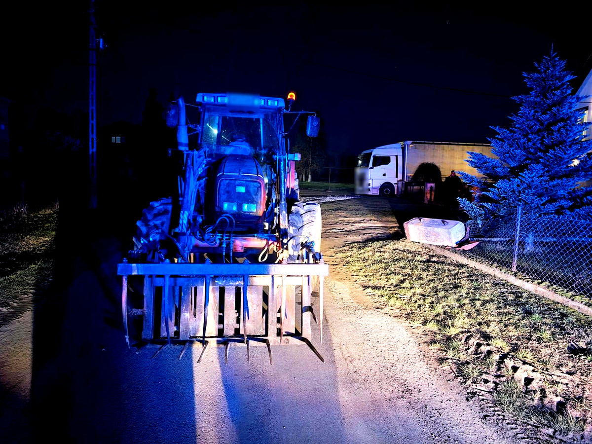 22 listopada 2025 roku około godziny 16, dyżurny piotrkowskiej jednostki otrzymał zgłoszenie dotyczące kolizji z udziałem nietrzeźwego kierującego. Policjanci pojechali do miejscowości Bogusławice, gdzie zastali pozostawiony na środku drogi ciągnik rolniczy. Z relacji zgłaszającego wynikało, że kierujący wjeżdżał na podwórko, a podczas cofania uderzył w słup ogrodzenia. Po całym zdarzeniu wysiadł z pojazdu chwiejąc się na nogach. W trakcie rozmowy wyczuwalna była od niego silna woń alkoholu. Zgłaszający, zabrał 47-letniemu mężczyźnie kluczyki od pojazdu, po czym zadzwonił na numer alarmowy. Badanie stanu trzeźwości mężczyzny wykazało niemal 2,5 promila alkoholu w organizmie. Funkcjonariusze ustalili również, że mieszkaniec powiatu posiada 3-krotny, dożywotni zakaz prowadzenia pojazdów mechanicznych. 47-latek swoje nieodpowiedzialne zachowanie tłumaczył koniecznością wykonania prac polowych. Podczas zatrzymania był agresywny, nie wykonywał również poleceń policjantów. Pojazd, którym poruszał się nietrzeźwy kierujący, został zabezpieczony. Decyzją Prokuratury Rejonowej w Piotrkowie Trybunalskim wobec podejrzanego zastosowany został dozór Policji. Mężczyzna usłyszał już zarzuty, grozi mu kara do 5 lat pozbawienia wolności.