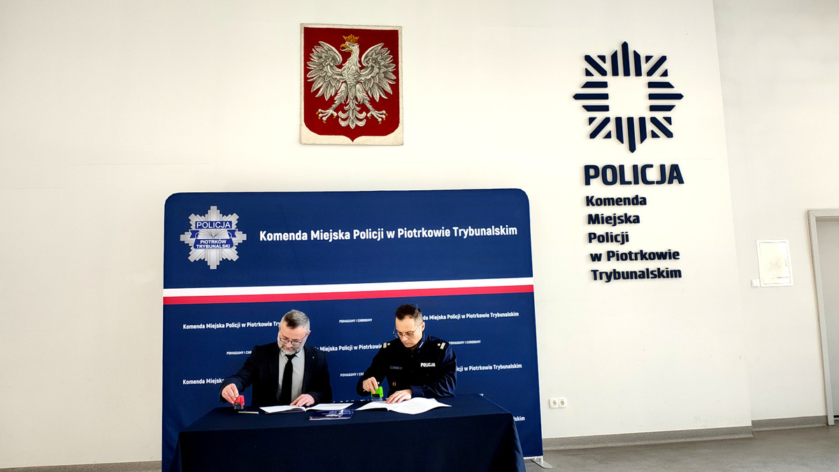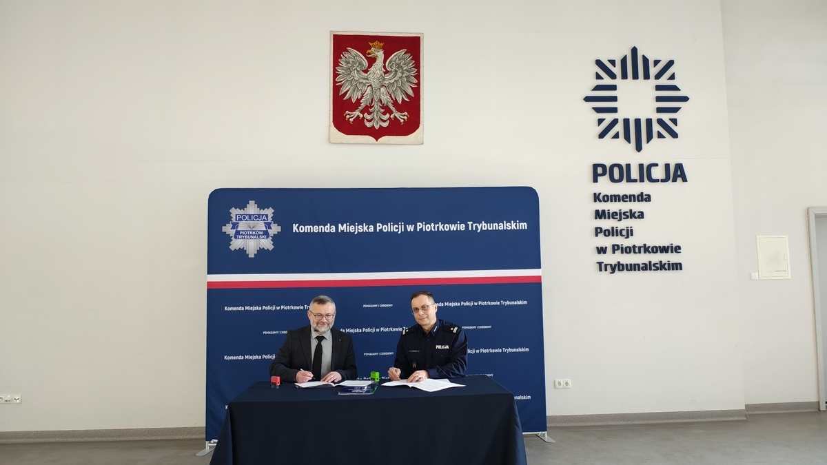 Komendant Miejski Policji w Piotrkowie Trybunalskim podinspektor Jakub Kowalczyk oraz Rektor Akademii Piotrkowskiej doktor habilitowany Jacek Bonarek, profesor Akademii Piotrkowskiej podpisali porozumienie o współpracy.