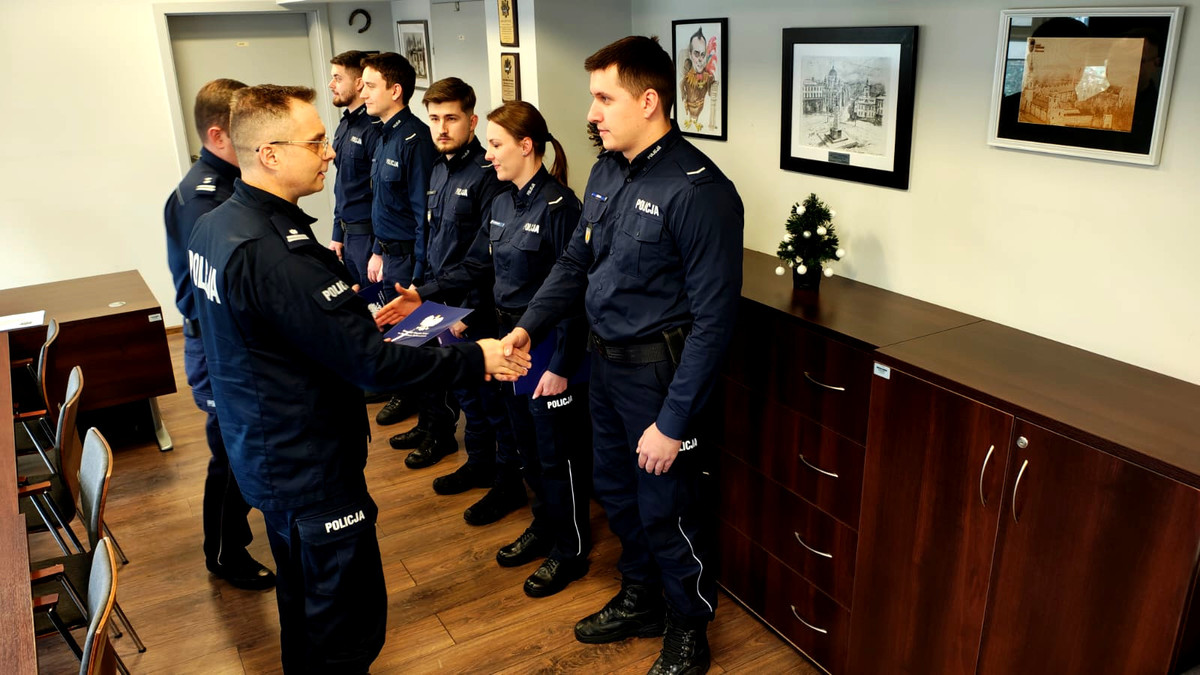 12 stycznia 2026 roku w gabinecie Komendanta Miejskiego Policji w Piotrkowie Trybunalskim odbyło się wręczenie aktów mianowania na pierwszy stopień podoficerski, które policjanci otrzymali z rąk Komendanta Miejskiego Policji, w obecności swoich bezpośrednich przełożonych. Podinspektor Jakub Kowalczyk pogratulował policjantom awansu, a także życzył im bezpiecznej służby. Zwrócił również uwagę na to, że to dopiero początek kariery w granatowym mundurze, a dalsze awanse jeszcze przed nimi.