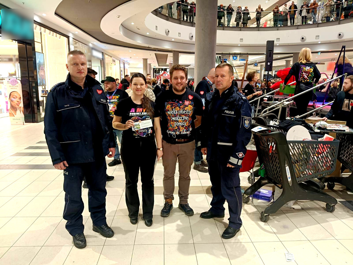 25 stycznia 2026 roku funkcjonariusze patrolując ulice miasta i powiatu dbali o bezpieczeństwo wolontariuszy, którzy kwestowali od wczesnych godzin porannych, by dotrzeć do każdego, kto chciał dołożyć swoją cegiełkę dla „zdrowych brzuszków naszych dzieci”. Funkcjonariusze byli obecni na parkingu centrum handlowego M-Park w Piotrkowie Trybunalskim, gdzie włączyli się do MOTO WOŚP, na którym obok zabytkowych aut znalazły się również pojazdy służb mundurowych. Nie zabrakło nas również w galerii handlowej Focus Mall, gdzie najmłodsi mogli sprawdzić swoją wiedzę w quizie, usiąść na policyjnym motocyklu czy zabawić się w technika kryminalistyki. Zarząd Terenowy Niezależnego Samorządnego Związku Zawodowego Policjantów w Piotrkowie Trybunalskim przekazał na licytację voucher na 6-dniowy pobyt w apartamencie dla czterech osób w Holiday Park & Resort. Po wylicytowaniu nagrodę dla zwycięzcy wręczyli Zastępca Komendanta Miejskiego Policji w Piotrkowie Trybunalskim młodszy inspektor Grzegorz Kotarski oraz Przewodniczący ZT NSZZP w Piotrkowie Trybunalskim aspirant sztabowy Tomasz Pawłowski.