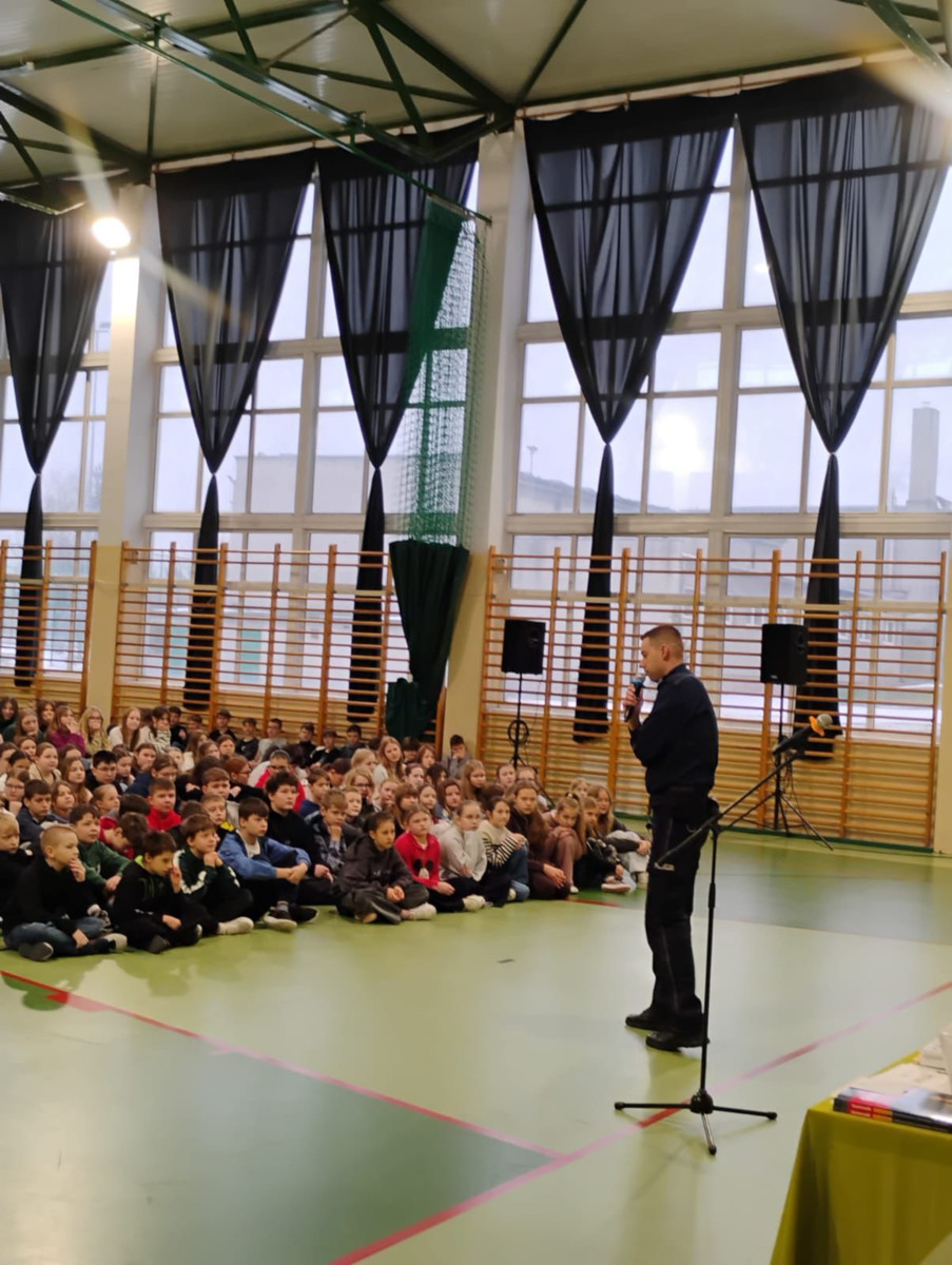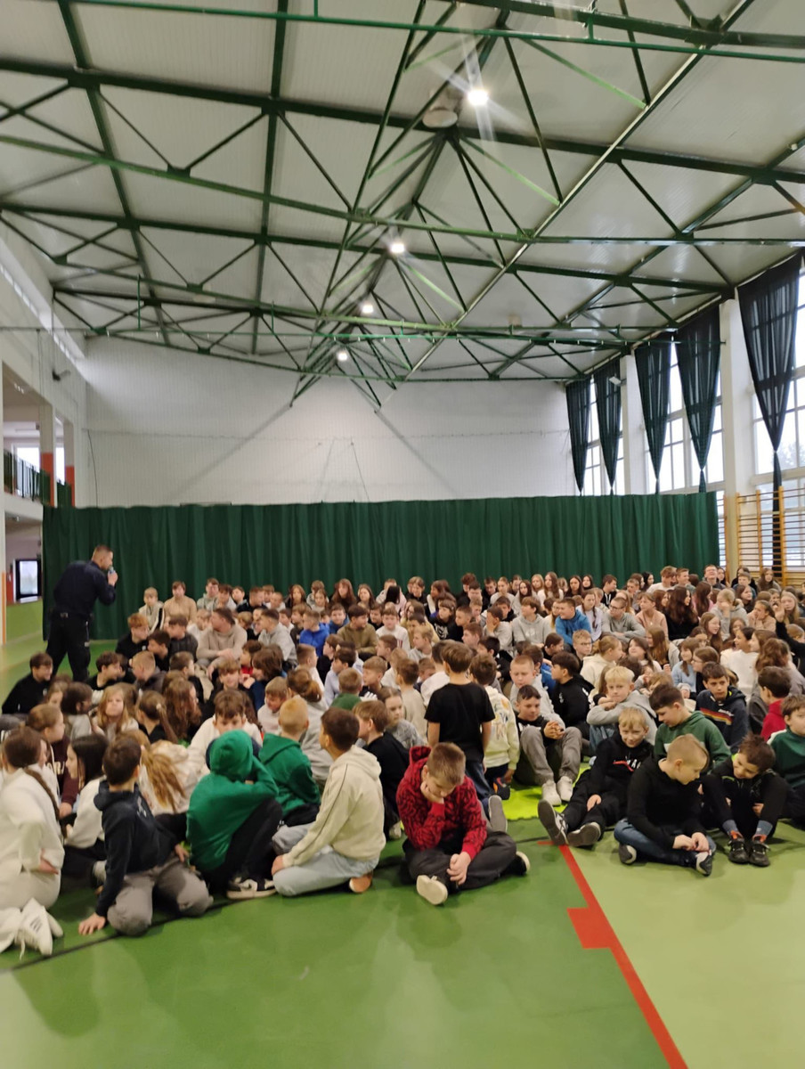 Kolejnym ważnym tematem były cyberzagrożenia. Uczniowie dowiedzieli się, jakie niebezpieczeństwa czyhają na nich w Internecie, m.in. cyberprzemoc, kradzież danych osobowych czy kontakt z nieznajomymi. Policjant przypomniał o zasadach bezpiecznego korzystania z sieci, odpowiedzialnym publikowaniu treści oraz konieczności ochrony swojej prywatności w mediach społecznościowych.