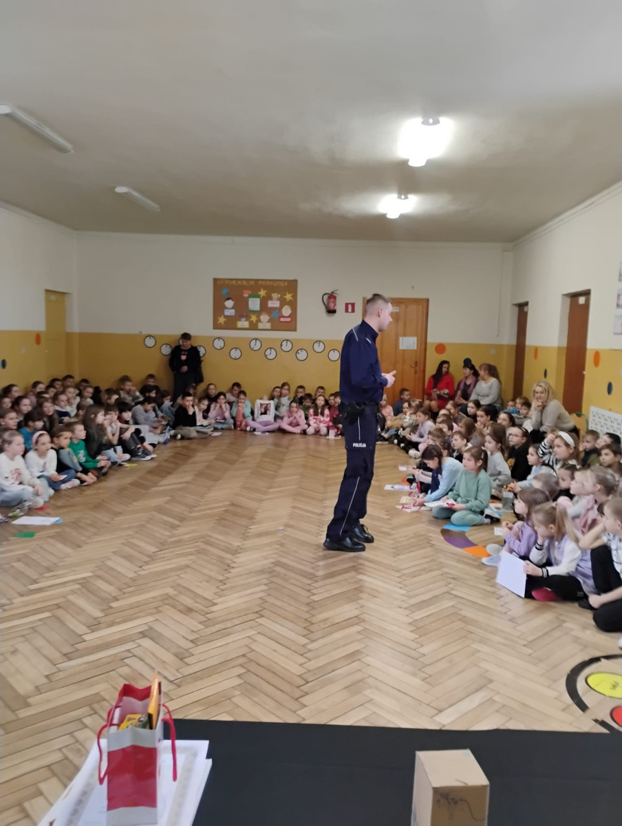 Starszy posterunkowy Łukasz Rak z Komisariatu Policji w Gorzkowicach w ramach akcji "Kręci mnie bezpieczeństwo w zimie" spotkał się z uczniami, aby przypomnieć im zasady bezpieczeństwa podczas rozpoczynających się ferii. Omówił również temat cyberzagrożeń, hejtu czy mowy nienawiści.