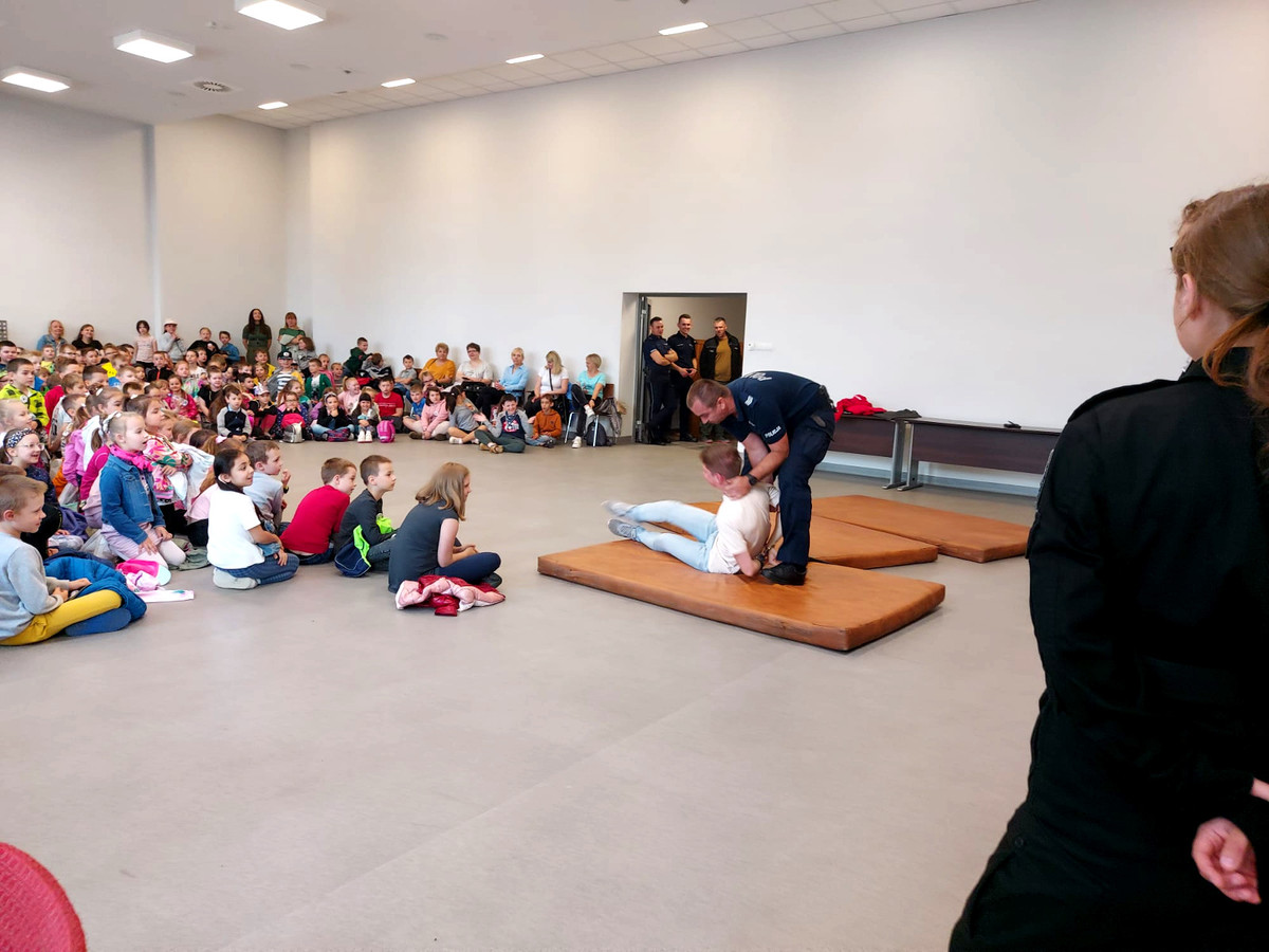 2 czerwca 2022 w Komendzie Miejskiej Policji w Piotrkowie odbyły się obchody z okazji Dnia Dziecka. Uczniowie piotrkowskich Szkół Podstawowych chętnie wzięli udział w spotkaniu, a na najmłodszych czekało wiele atrakcji. Gości przywitał I Zastępca Komendanta Miejskiego w Piotrkowie Trybunalskim – mł. insp. Rafał Rękawiecki, a także Komisarz Błysk, który wywołał wiele uśmiechu na małych buziach. W obchodach wzięli też udział ratownicy Wodnego Ochotniczego Pogotowia Ratunkowego z Piotrkowa, którzy jako pierwsi opowiedzieli o bezpieczeństwie nad wodą podczas letniego wypoczynku. Pokazali też, jak wygląda akcja ratunkowa, kiedy osoba będąca w wodzie potrzebuje pomocy. Następnie dzieci mogły zapoznać się z taktykami i technikami interwencji. Duże wrażenie zrobił pokaz policjantów, którzy zaprezentowali obezwładnienie niebezpiecznego przestępcy. Przedstawiciele grup poszczególnych szkół wzięli również udział w konkursie plastycznym o tematyce pn. „Kręci mnie bezpieczeństwo nad wodą”. Po zakończonym nagrodami konkursie milusińscy mogli poznać radiowozy oraz wyposażenie policjantów. Dzieci miały możliwość zobaczenia jak od środka wygląda policyjna więźniarka, wsiąść do policyjnego radiowozu czy usiąść na policyjnym motocyklu. Mogły również zapoznać się z wyposażeniem Wodnego Ochotniczego Pogotowia Ratunkowego i usiąść na skuterze wodnym. Uczniowie spotkali się też z przewodnikami psów służbowych. Mundurowi opowiedzieli jakie umiejętności posiadają ich czteronożni partnerzy oraz jak wygląda służba z psem. Technik kryminalistyki opowiedział milusińskim na czym polega jego praca oraz w jaki sposób zabezpieczane są ślady na miejscu zdarzenia. Dzieci na kolorowych kartach „Daktyloskopia na wesoło” mogły sprawdzić jak pobiera się ślady linii papilarnych. Na zakończenie na dzieci czekały quizy i słodki poczęstunek. Łącznie w Mundurowym Dniu Dziecka wzięło udział 211 uczniów.