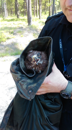 Niecodzienną interwencję przeprowadzili - policjant z piotrkowskiej komendy pełniąc służbę wspólnie ze funkcjonariuszem z Państwowej Straży Leśnej, którzy zauważyli rannego myszołowa. Dzięki zaangażowaniu mundurowych udało się uratować ptaka.