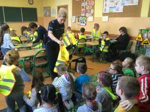Na jakim świetle przechodzimy przez jezdnię, dlaczego jeździmy w fotelikach i jakie kolory ma sygnalizacja świetlna na drodze… to tylko niektóre pytania, z którymi świetnie poradzili sobie uczniowie klas I, II, III Szkoły Podstawowej nr 11 w Piotrkowie Trybunalskim na spotkaniu z policjantką.